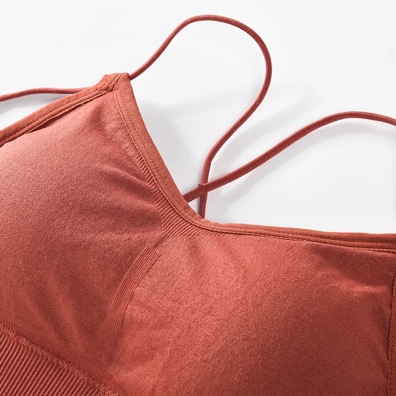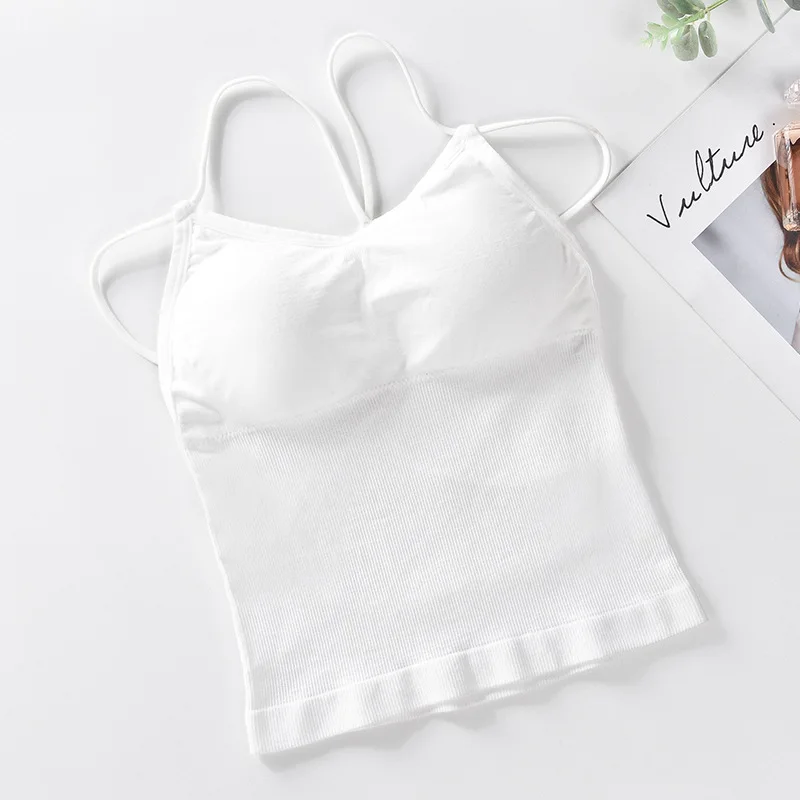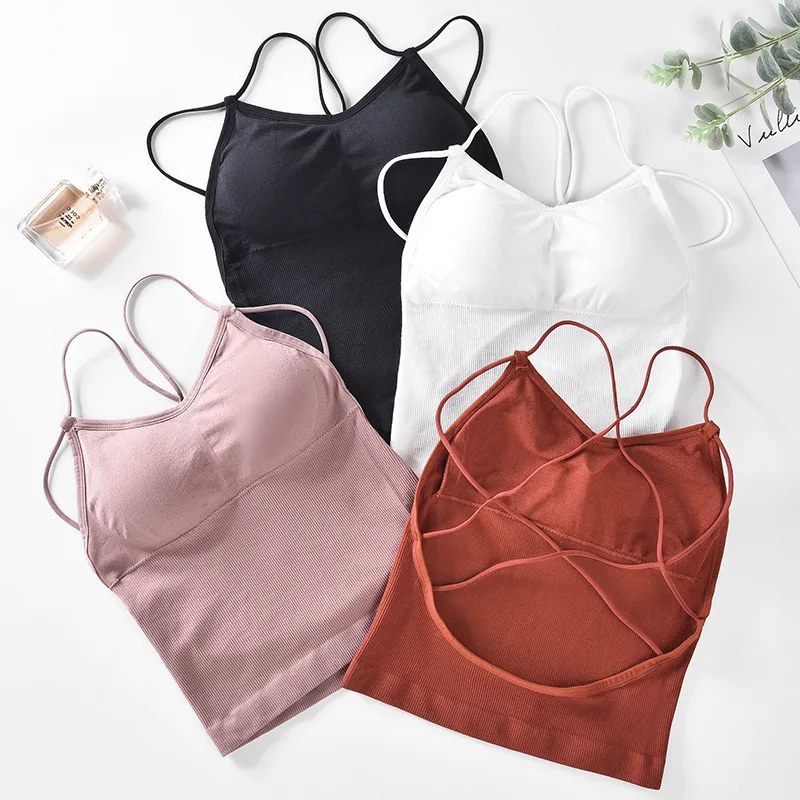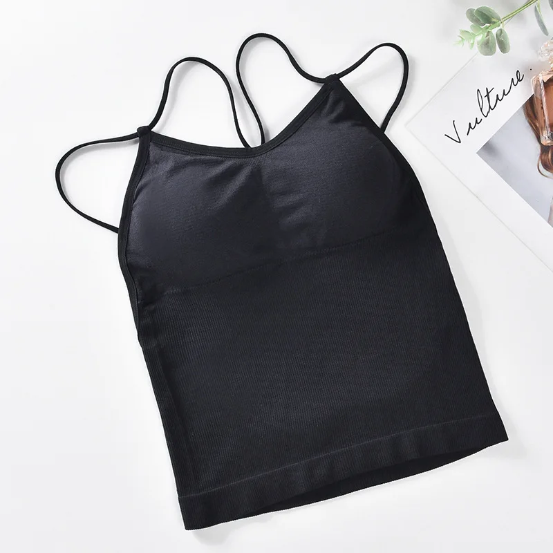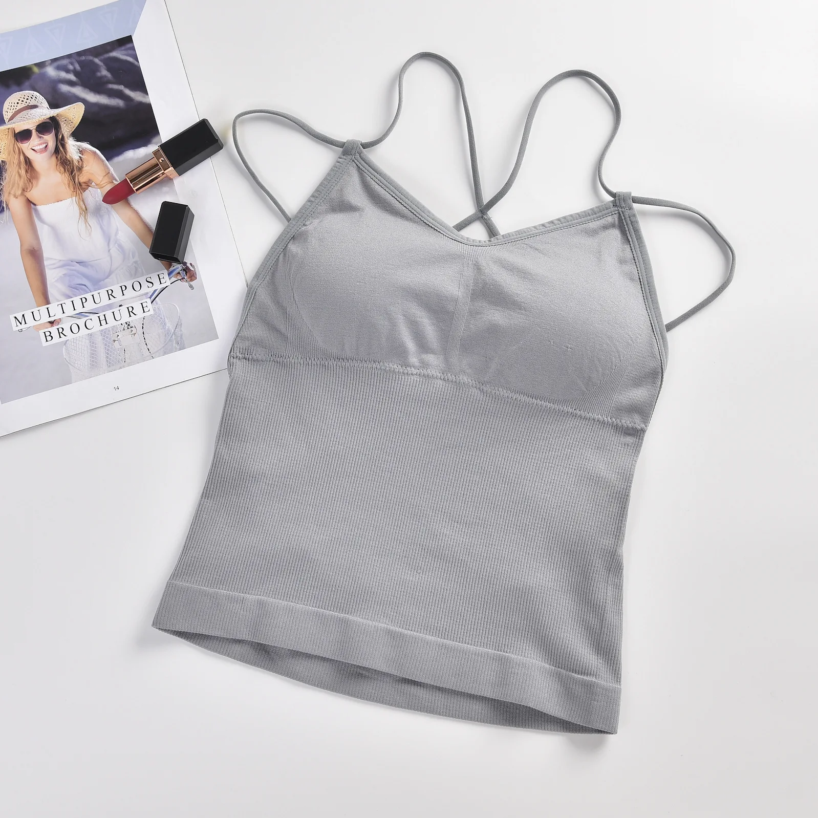 Seamless Underwear Cross Back Sleeveless Padded Cropped Tanks Top