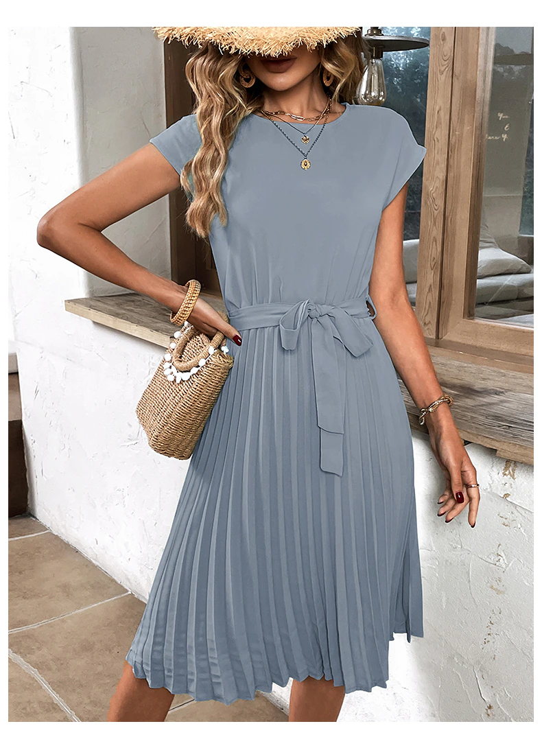 Elegant Casual Beach Sundress Short Sleeve Pleated Mini Dress