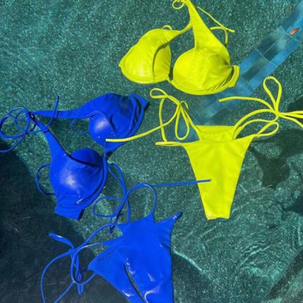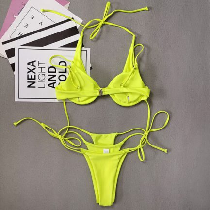 Be the first to review “Bandage High Waist Fake Two Bikini Set Halter Sling Swimsuit”