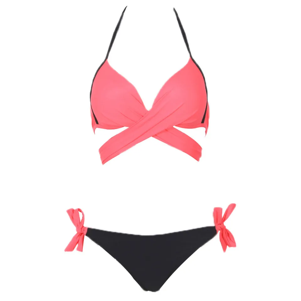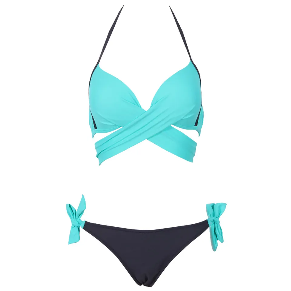 Bikini Swimsuit Two Tone Cross Front Two Piece Bathing Suits