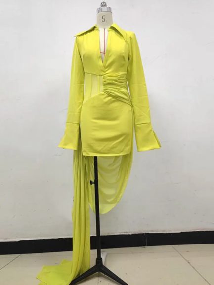 Sexy Deep V-Neck Mesh Patch Mini Dress