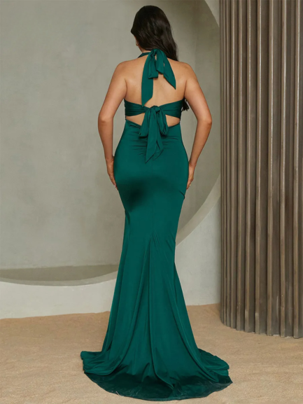 Sexy Halter Lace-up Backless Sleeveless Mermaid Dress