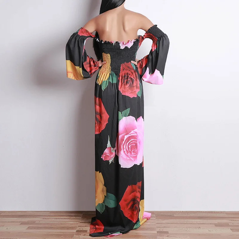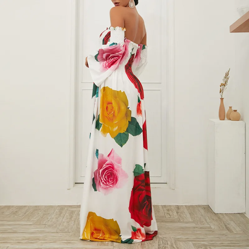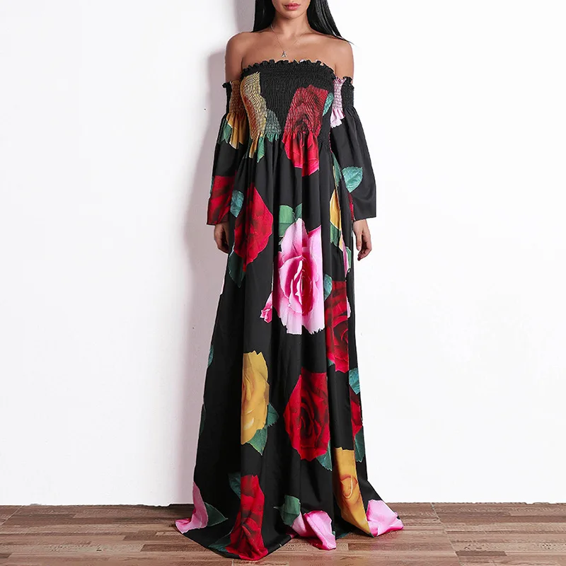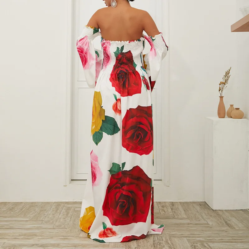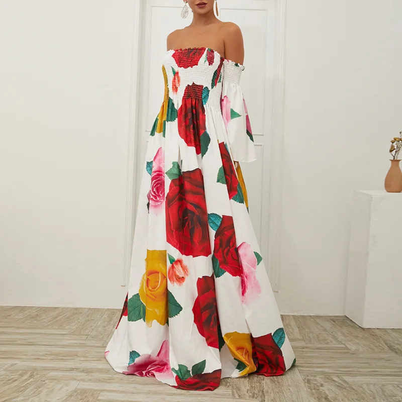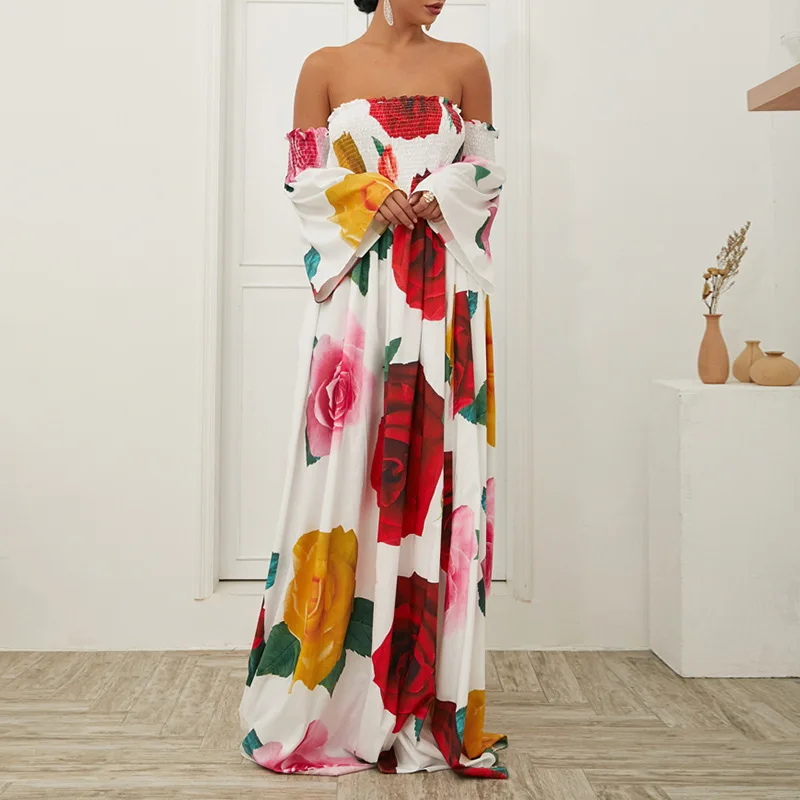 Be the first to review “One-Neck Flower Print Strapless Printing Long Dress”