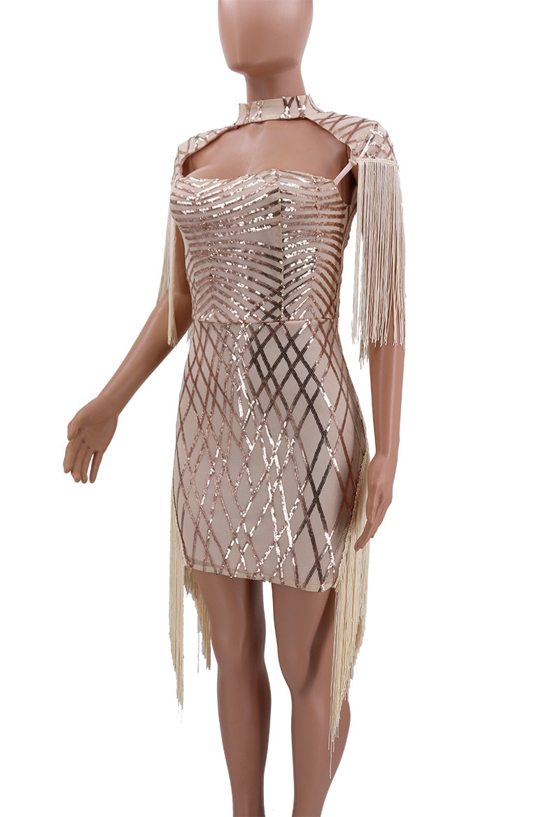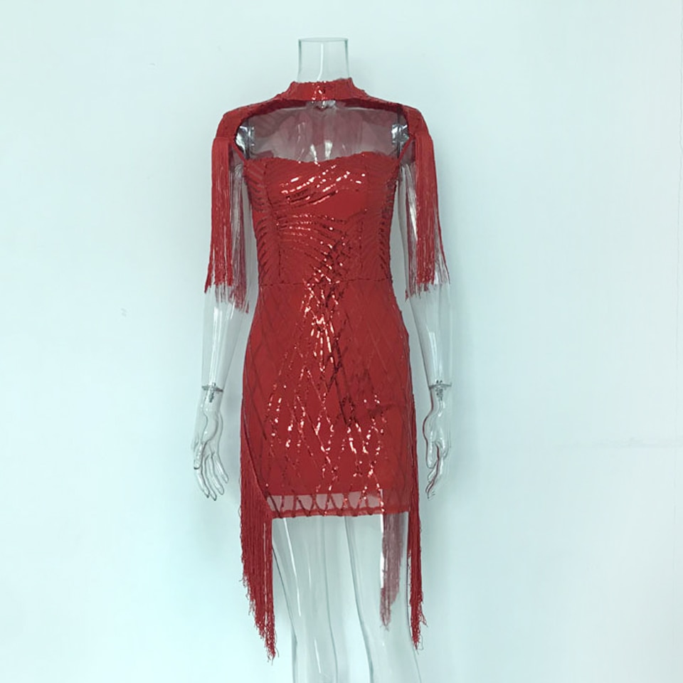 Sexy Sheer Sequins Evening Party Bodycon Mini Dress