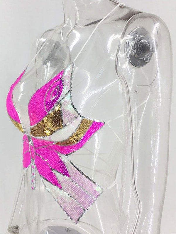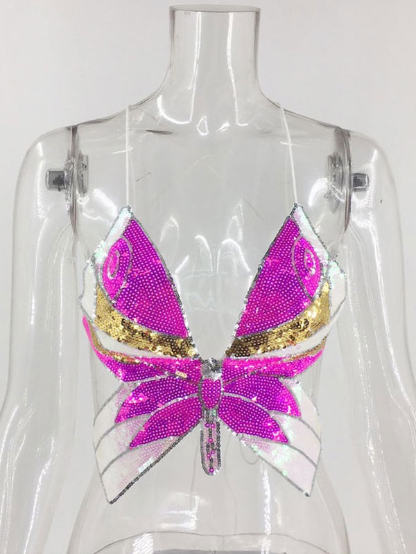 Sexy Tops Sheer Butterfly Sequins Backless Cami Tops