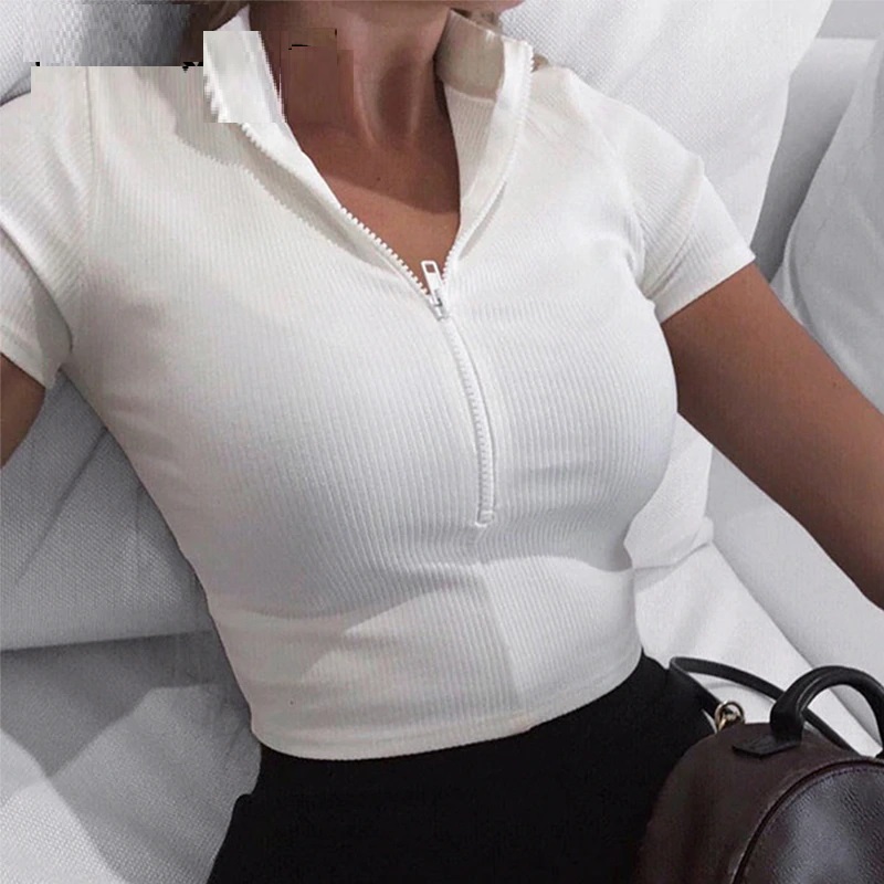 Be the first to review “Sexy V-Neck Solid Zipper T-shirt”