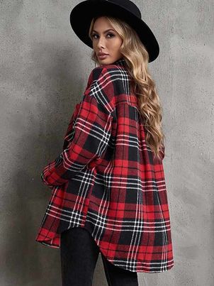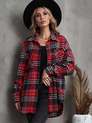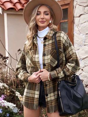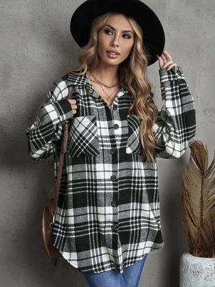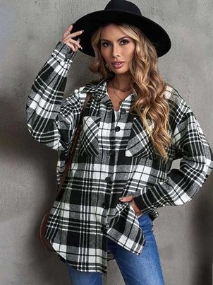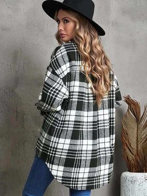 Shacket Jacket Turndown Collar Plaid Long Sleeve Fall Outerwear