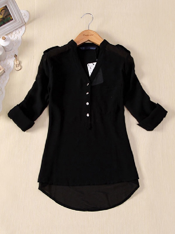Sheer Chiffon Tabbed Sleeves Blouse