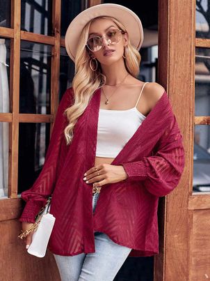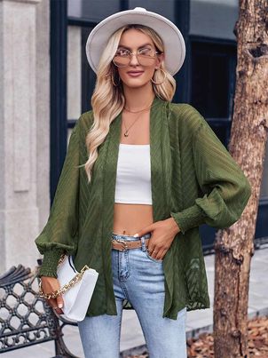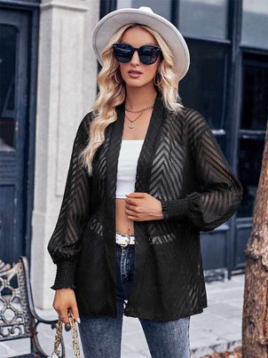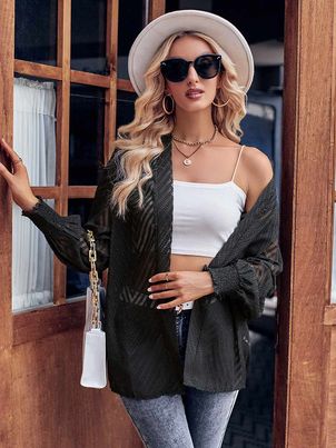 Shirt Jacket Long Sleeves See-through Outerwear For Women