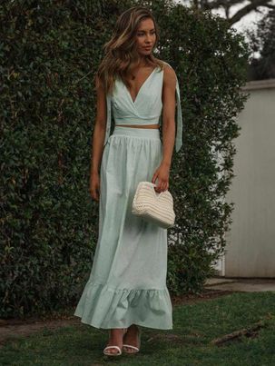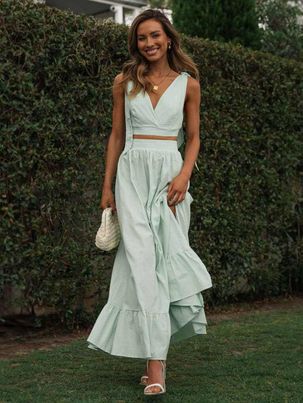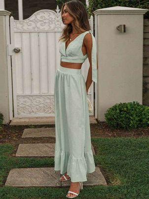 Skirt Set Light Green Beach Lace Up Casual Two Piece Sets