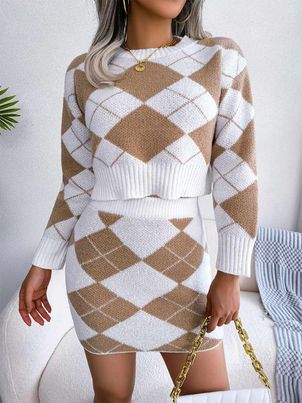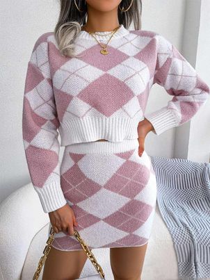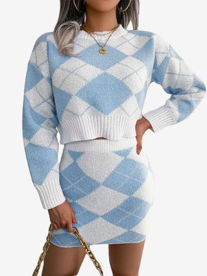 Skirt Set Plaid Street Wear Acrylic Sexy Two Pieces Sets