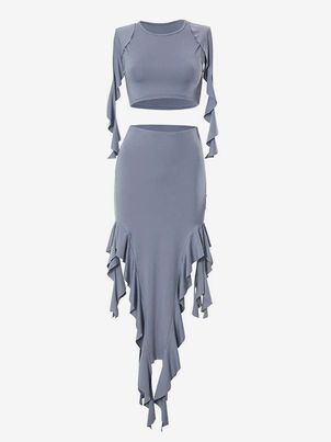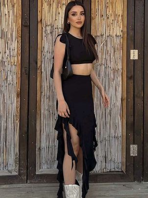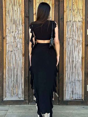 Skirt Set Resort Wear Ruffles Casual Two Piece Sets