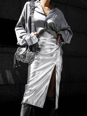 Skirts Silver Raised Waist Casual High-slit Women’s Bottoms