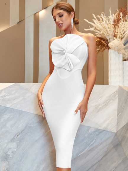 • Color: White / Pink Bandage Dress