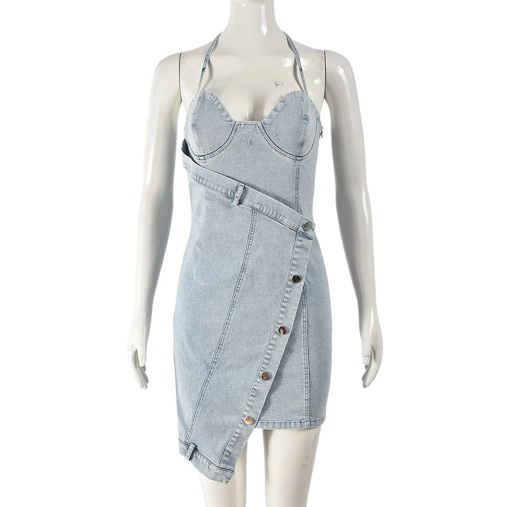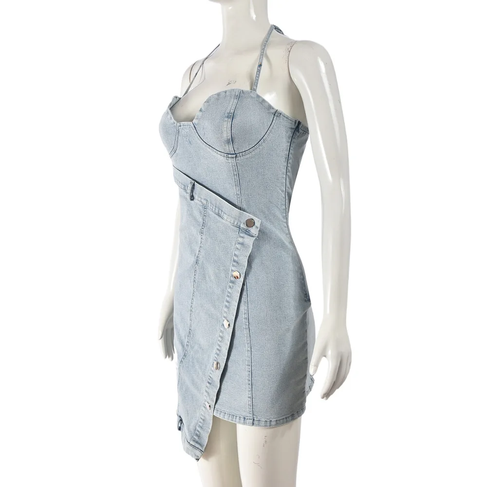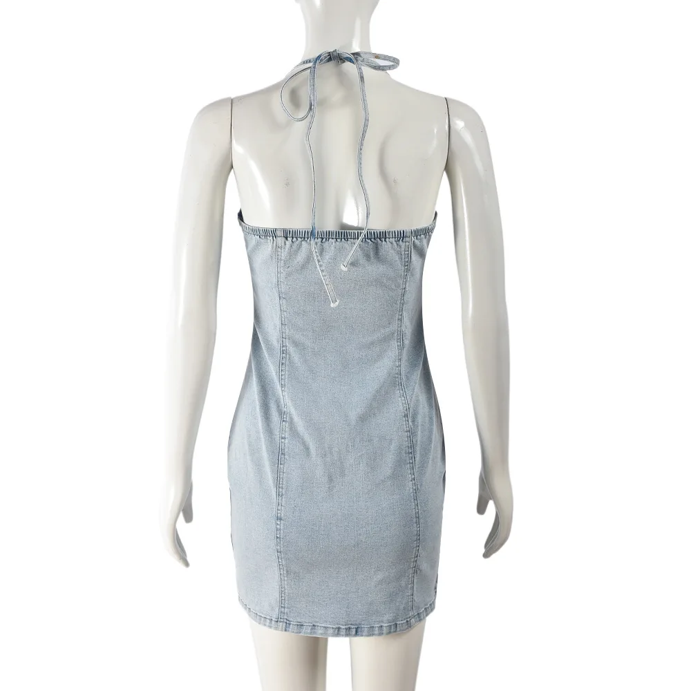 Sleeveless Denim Halter Backless Streetwear Vintage Party Mini Dress Vestidos