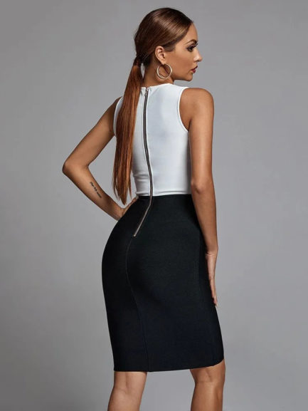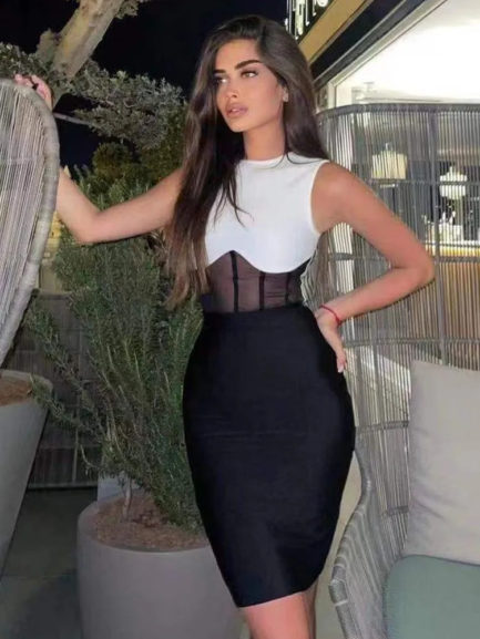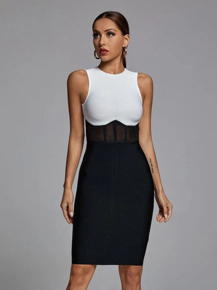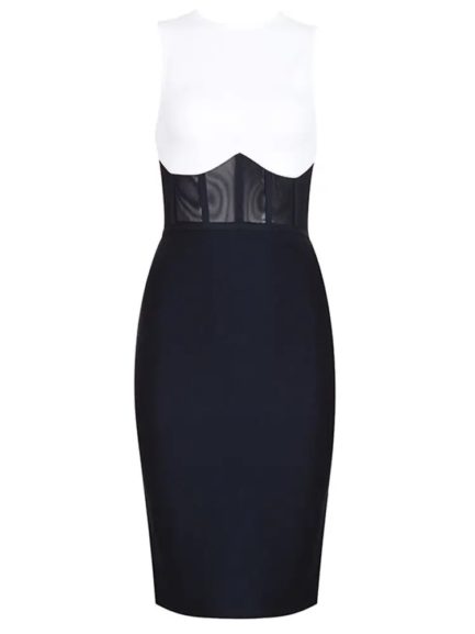 Sleeveless Patchwork Mesh Midi Bodycon Dress