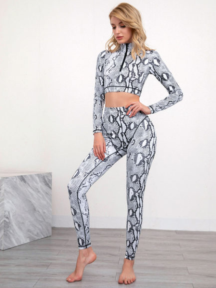 Be the first to review “Snake Print Activewear Yoga Polyester Long Sleeves Sexy Workout Clothing Stretchy 2 Piece Set”