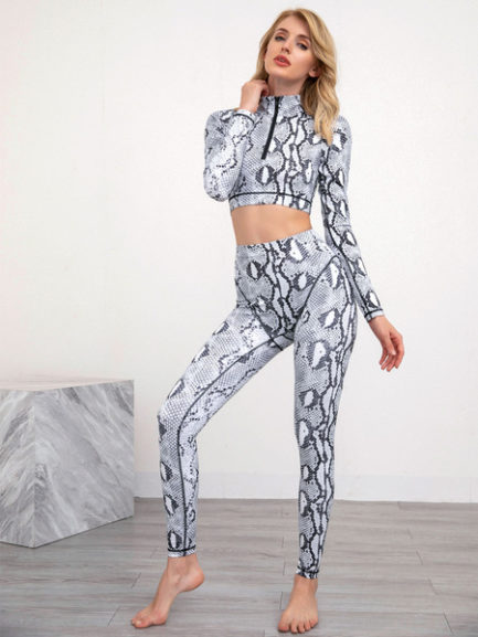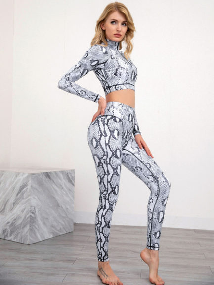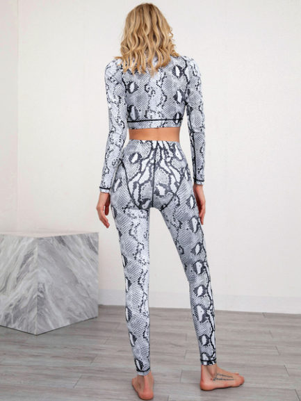 Snake Print Activewear Yoga Polyester Long Sleeves Sexy Workout Clothing Stretchy 2 Piece Set