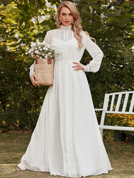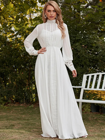Soft cuff Sleeves Chiffon Lace Dress