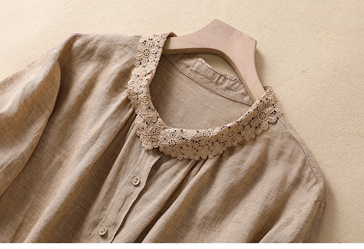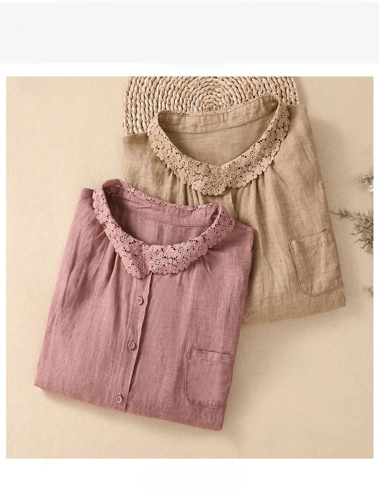 Solid Color Cotton and Linen Leisi Edge Collar Artistic Loose Top