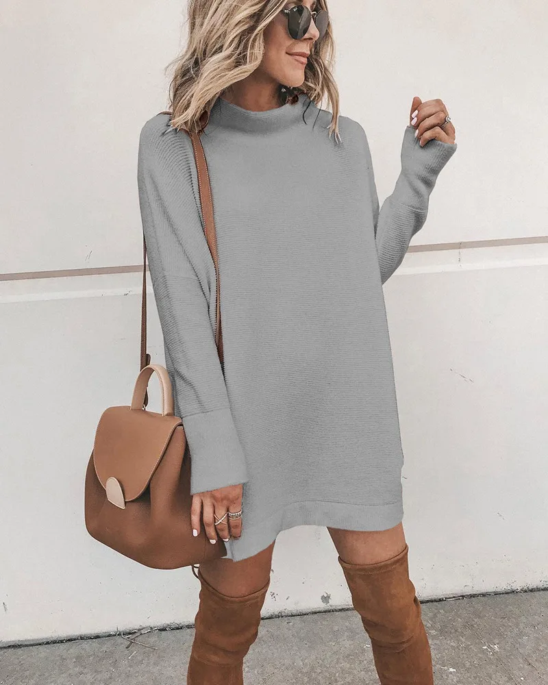 Solid Color Fashion Long Sleeve O Neck Mini Dress