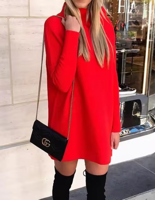 Be the first to review “Solid Color Fashion Long Sleeve O Neck Mini Dress”