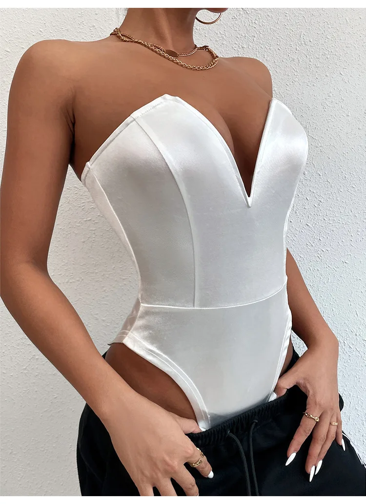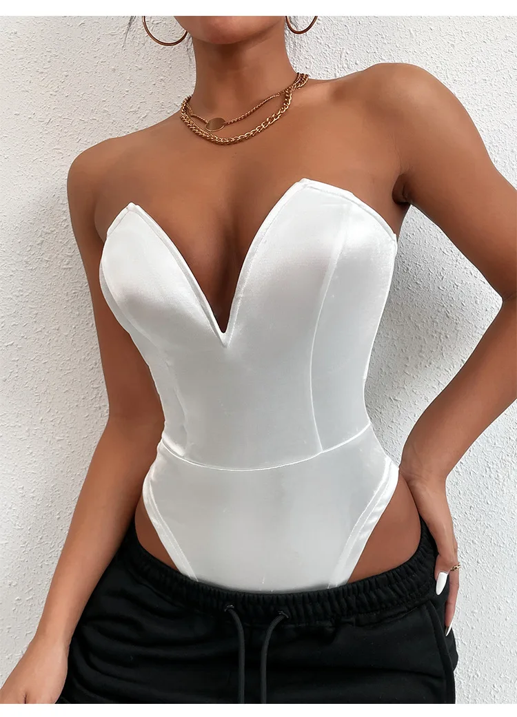 Solid Short Strapless Skinny One-pieces Bodysuits