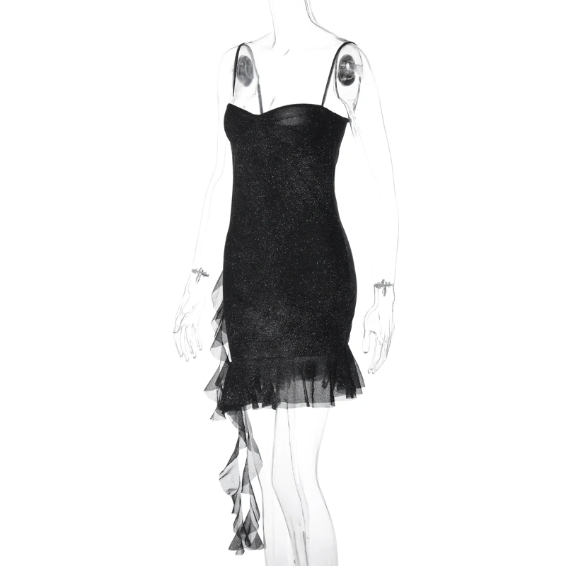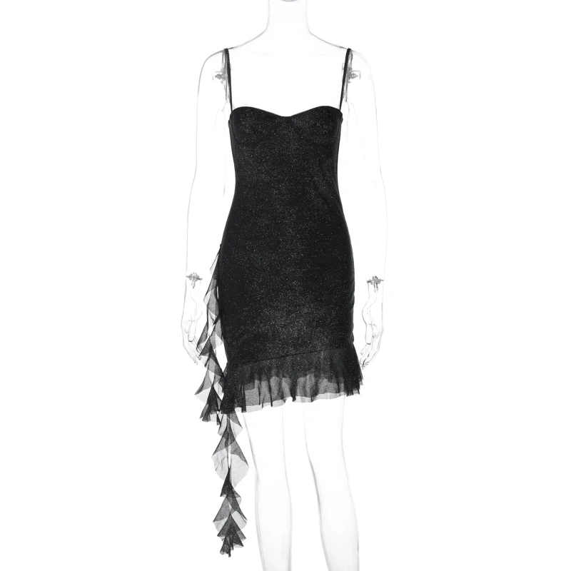 Sophisticated Glitter Spaghetti Strap Mini Dress for Cocktail Parties