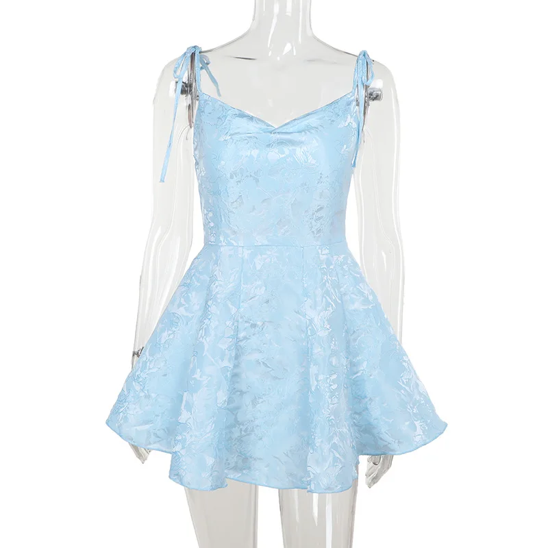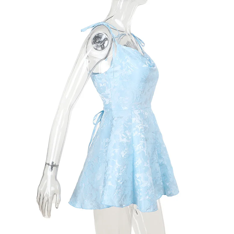 Spaghetti Strap Backless Lace-up Sleeveless A-line Club Party Mini Dress
