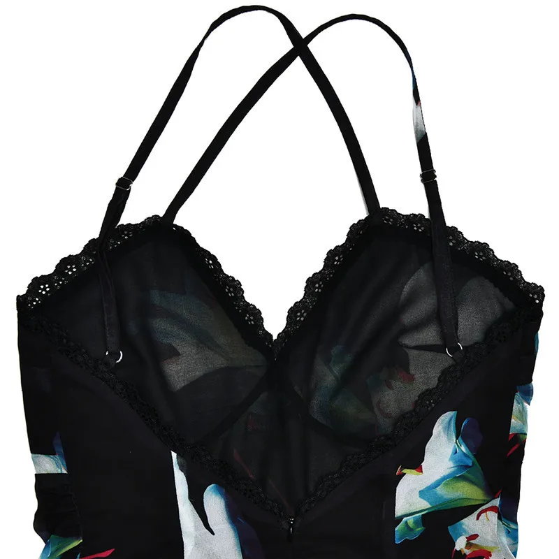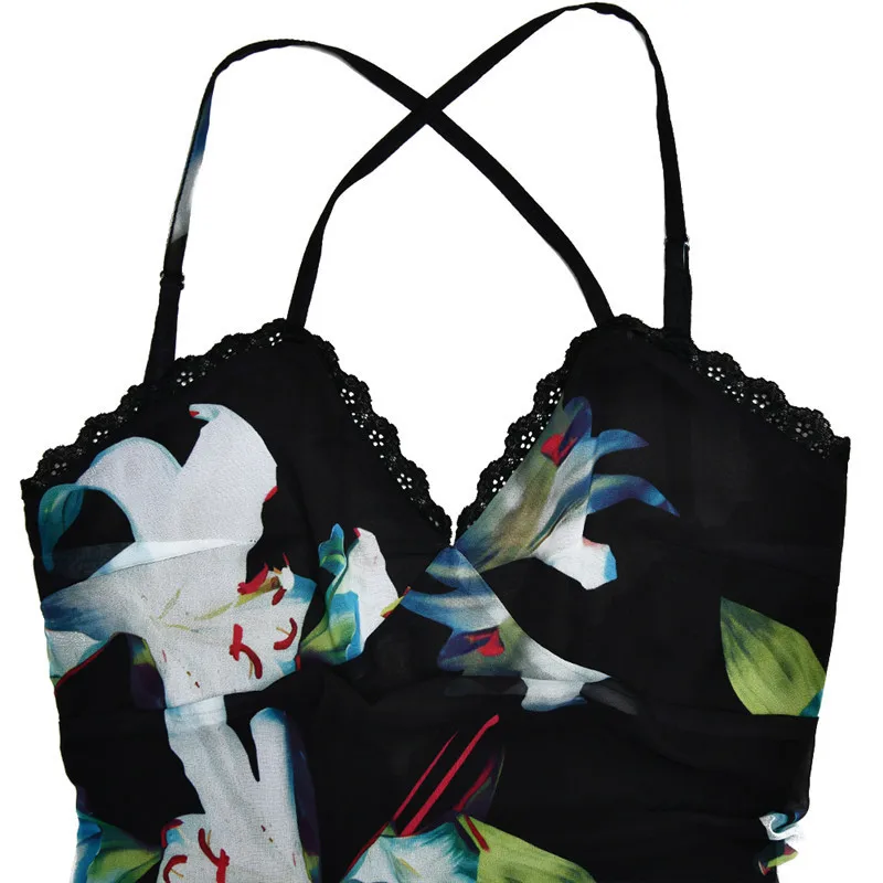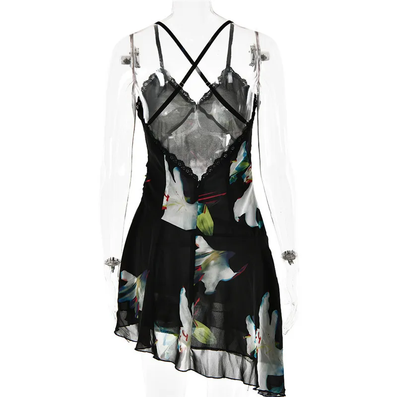 Spaghetti Strap Robe V Neck Backless A-line Club Party Beach Print Mini Dress
