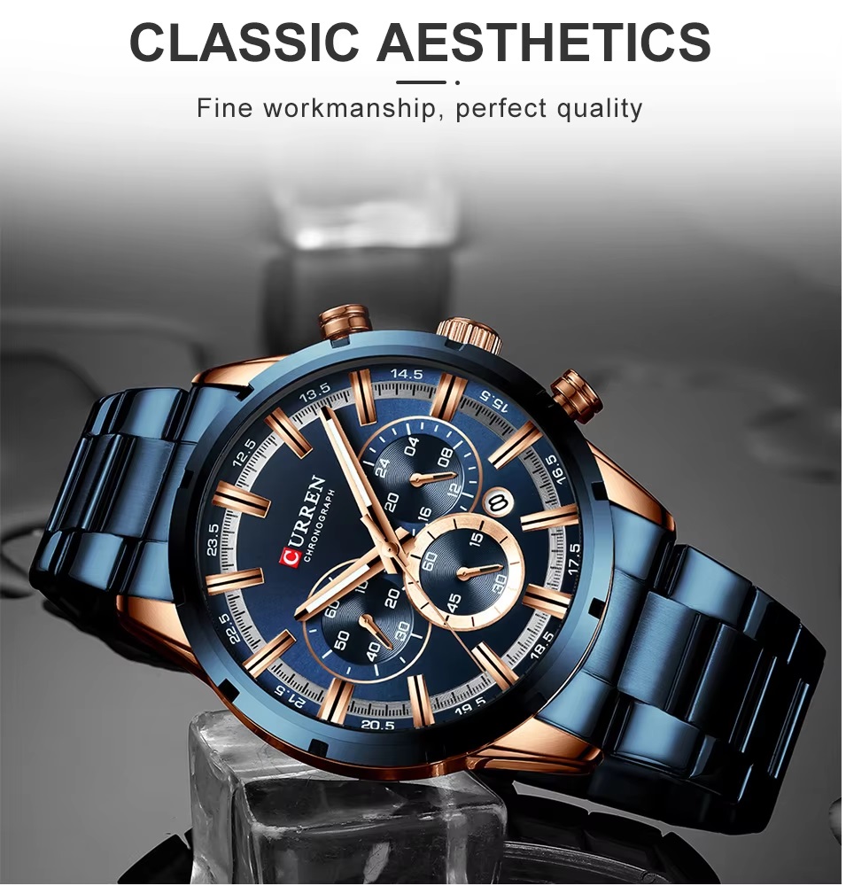 Sports Quartz Mens Full Steel Waterproof Chronograph Wristwatch
