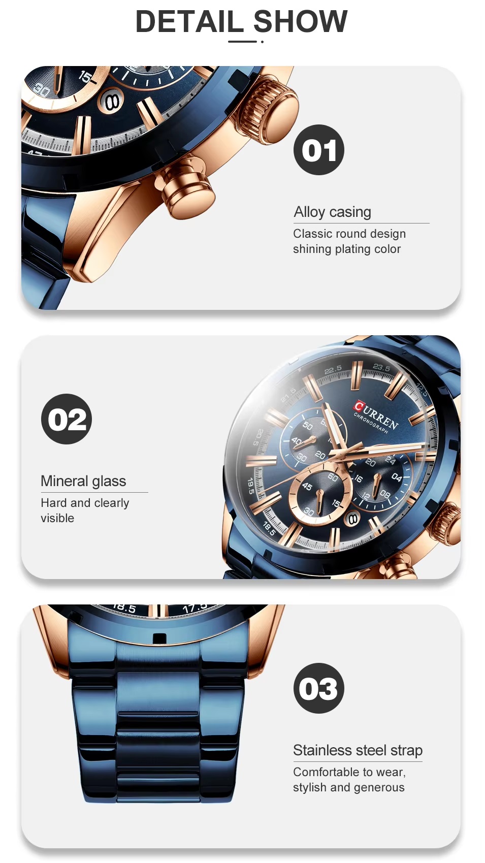 • Feature: STOP WATCH,Shock Resistant,Auto Date,Chronograph,Complete Calendar,Multiple Time Zone,Water Resistant,luminous hands