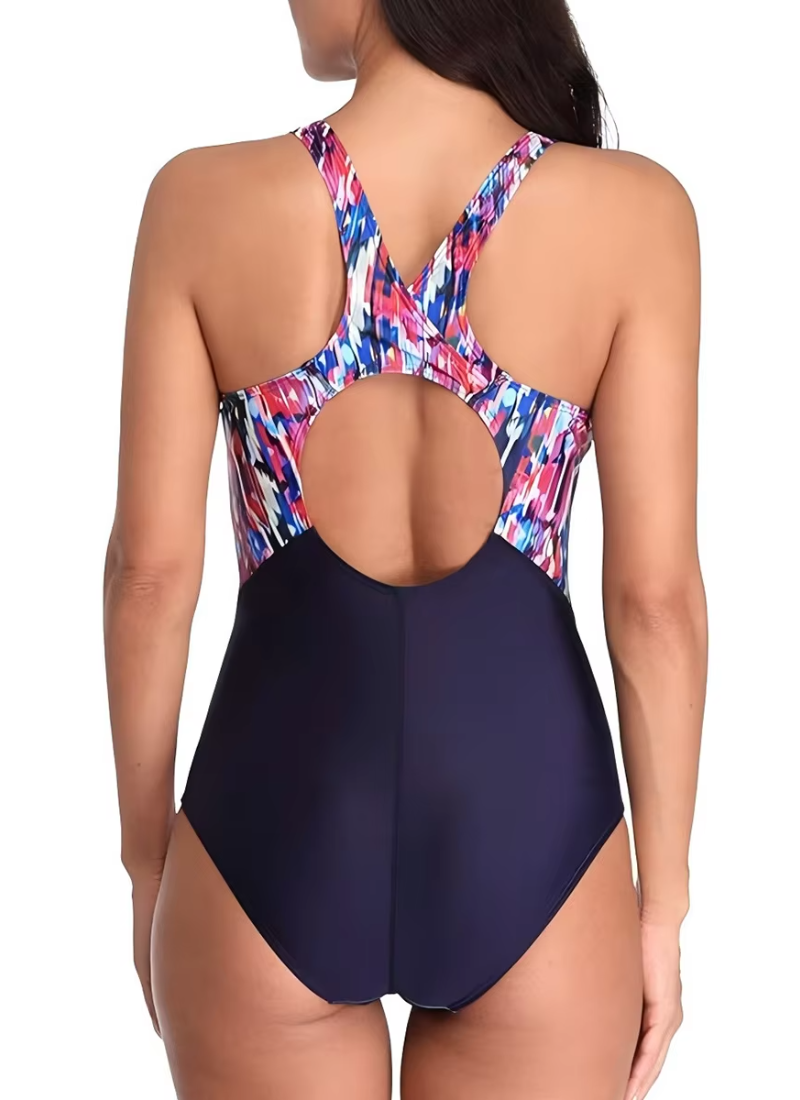 Sporty Printed Slim Swimsuit One Piece Back Cross Beachwear Swim Suit