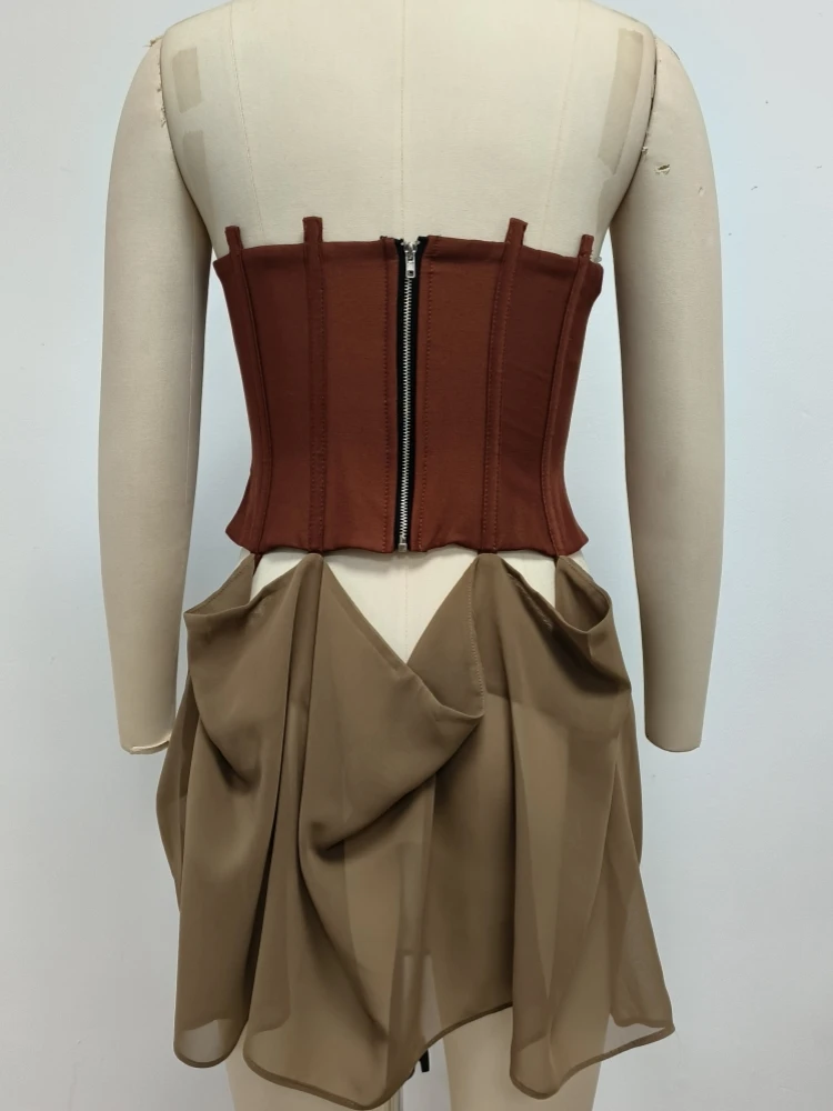 Strapless Lace-Up Design Patchwork Hollow Out Dresses Evening Party Cocktail Mini Dress