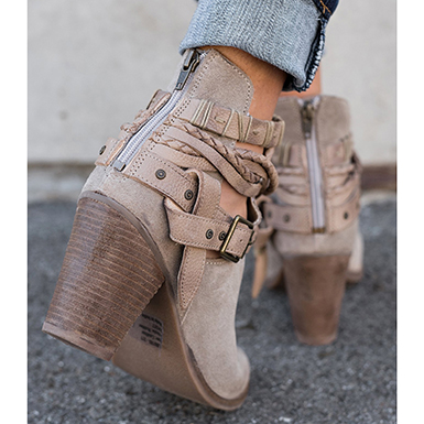 You will be at the height of fashion when you strap yourself into these ankle boots. The wooden chunky heel is not only stable, but provides an additional design element to your look. Suede material throughout the boot provides you not only a soft look, but a soft feel against your feet that you’re going to appreciate. The straps on the foot and ankle of the boots give you a design element that you’re going to want to show off. This includes different straps from a woven style to stitched and even studded. Combine this with the round toe style of the boots and you have a design that is not only comfortable to wear, but will easily go with just about any style that you’re trying to create. You’ll always feel comfortable and happy with these ankle boots on.