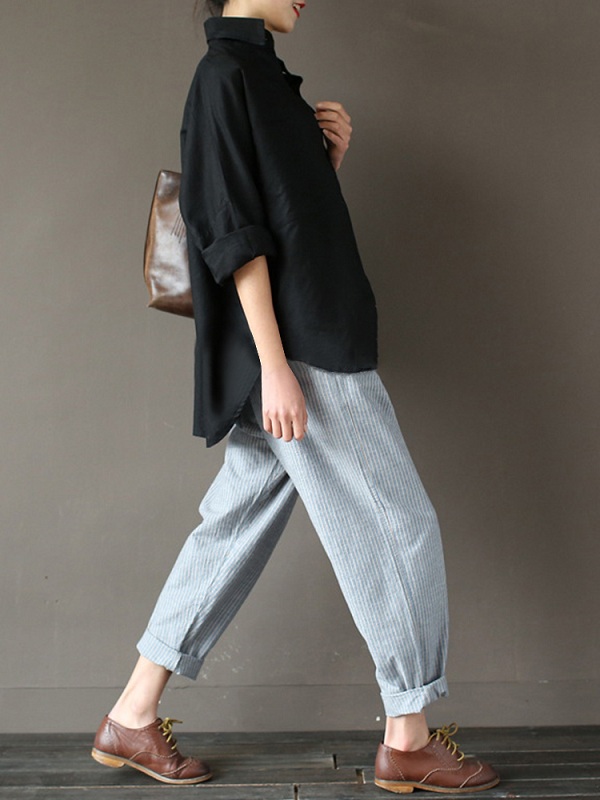 Be the first to review “Stripe Elastic Waist Pockets Loose Pants”
