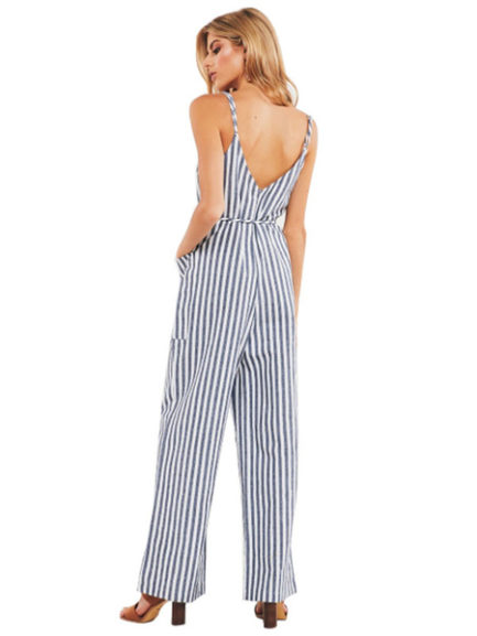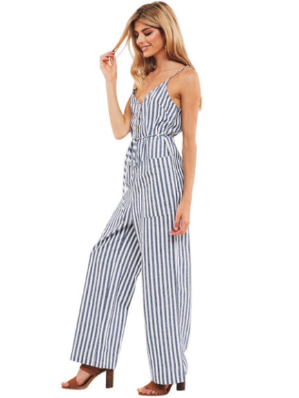 Be the first to review “Striped Sleevless Buttons Wide Leg Jumpsuit”