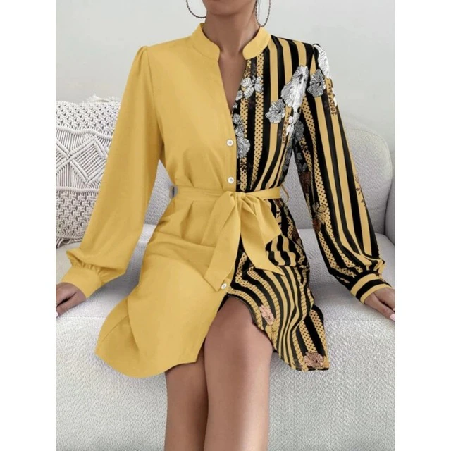 Be the first to review “Lantern Sleeve Print Stripe Button Shirt Dresses”