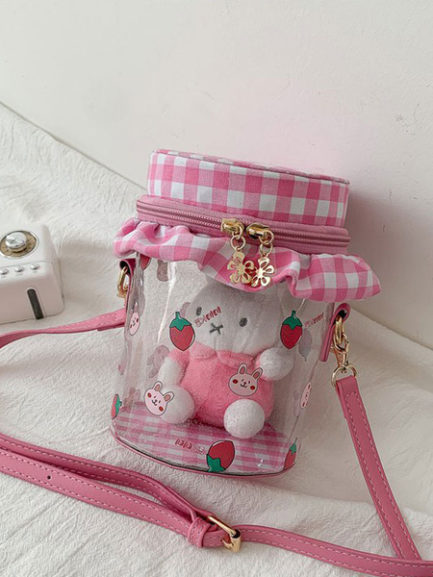 Be the first to review “Sweet Lolita Bag Transparent Toy Plaid PU Leather Cross Body Bag”