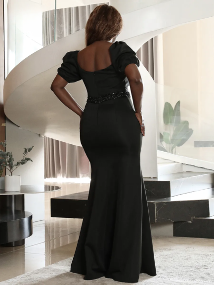 Sweetheart Neck Short Sleeves Sequin Slim Mermaid Black Dress