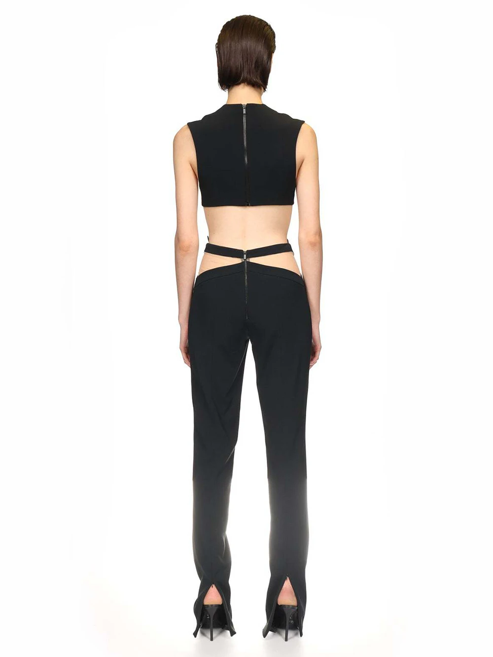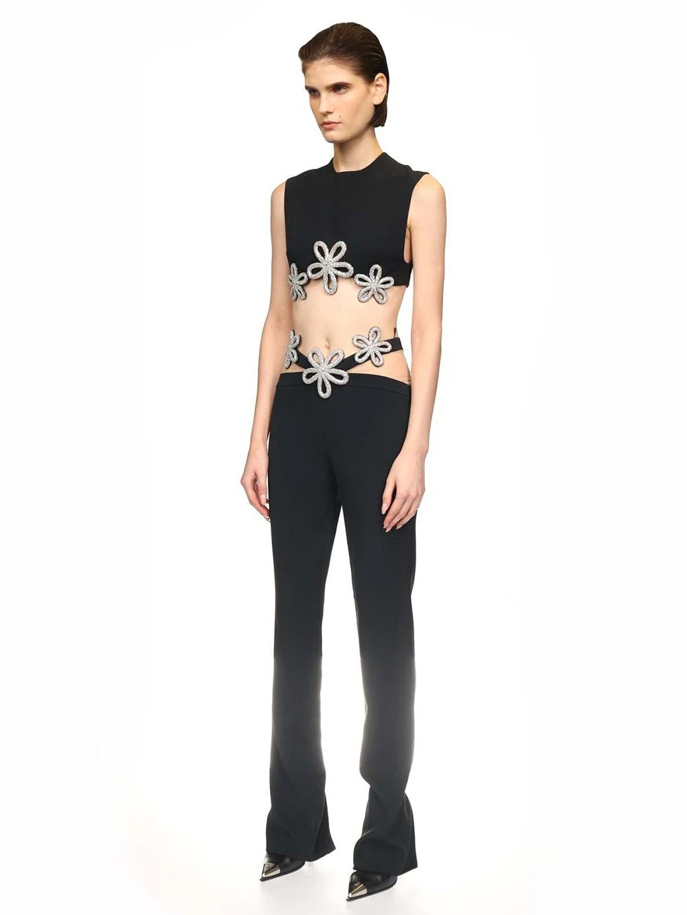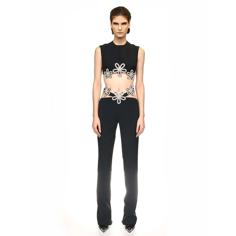 Tank Top Flower Diamond Low Waist Mesh Spliced Tight Pants Heavy Industry Two Piece Set