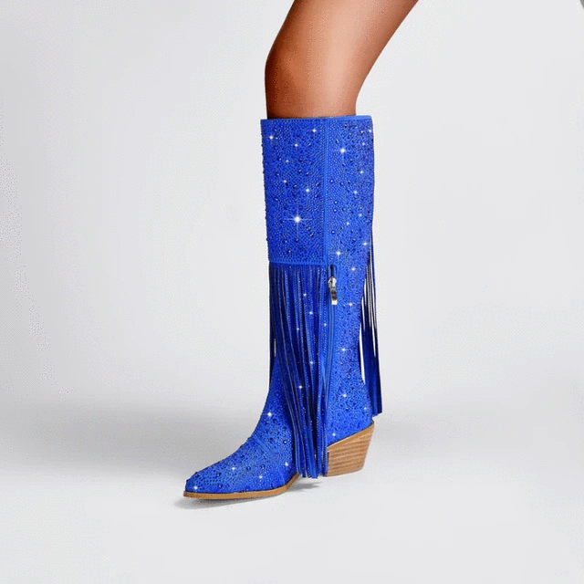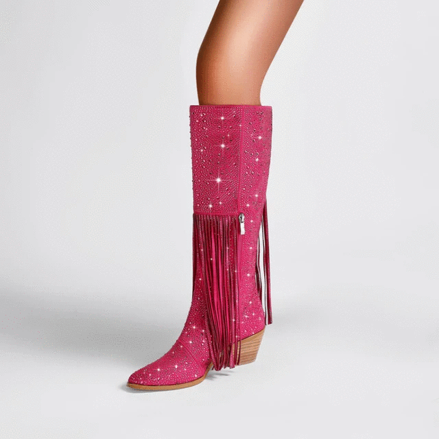 Thick Heel Fashion Tassel Rhinestone Boots