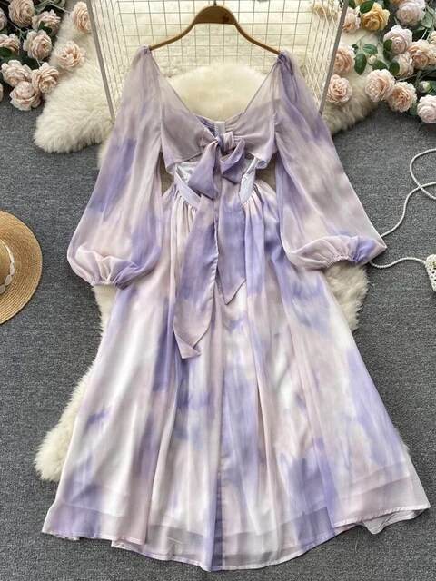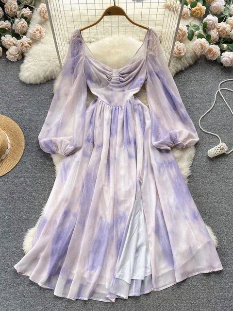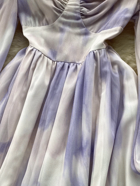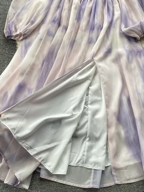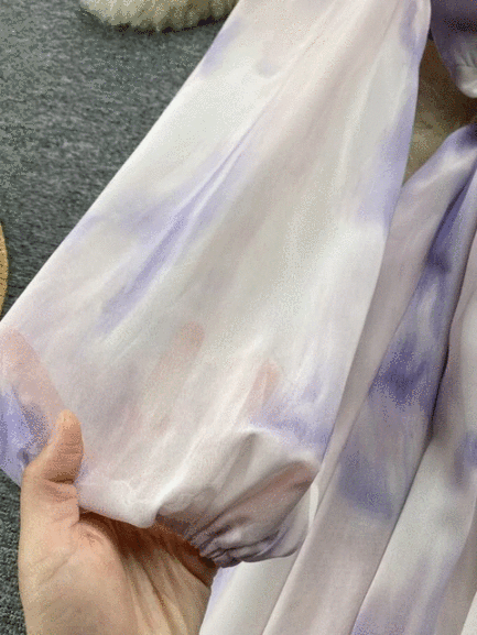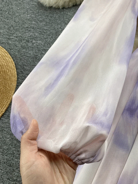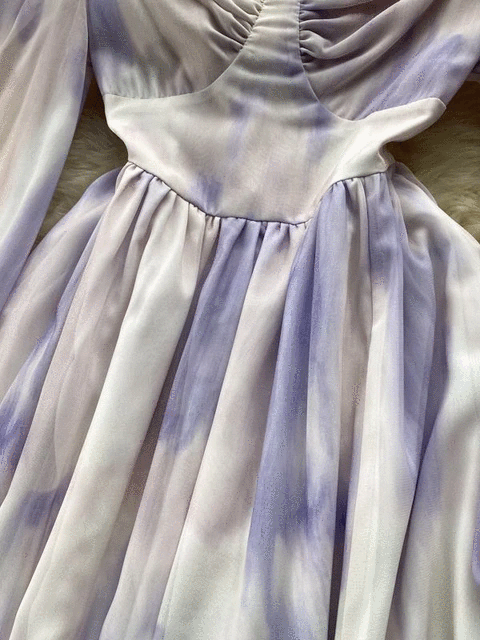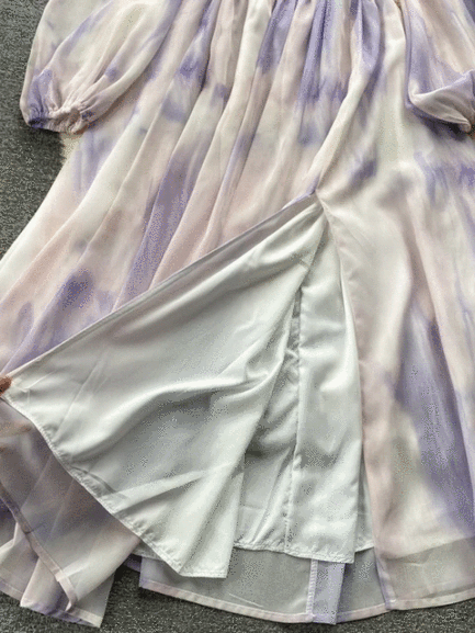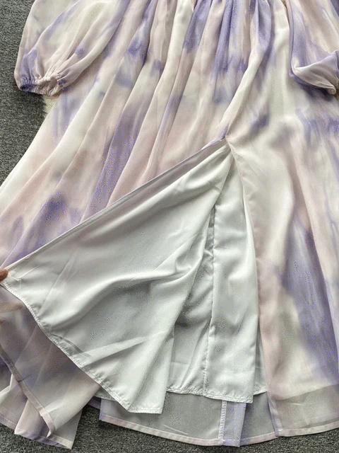 Tie Dye Print Big Swing Chiffon Long Dress