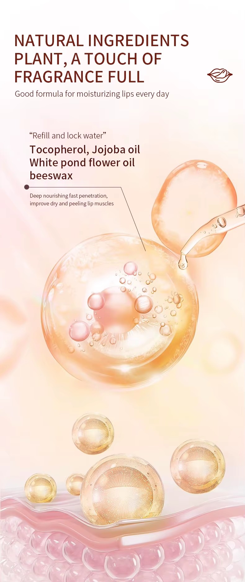 Enriched with Vitamin E, it deeply hydrates and moisturizes your lips. It effectively relieves dryness and chapping, keeping your lips soft, smooth and supple all day long.