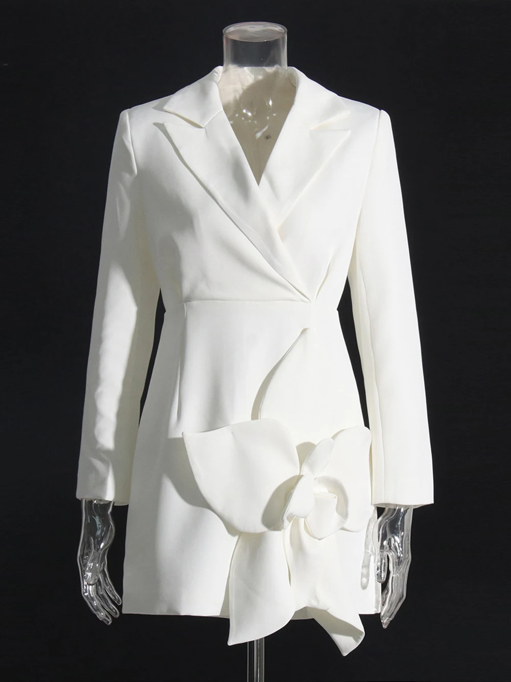 Trendy Clubwear Mini Dress with 3D Flower Accents and Elegant Long Sleeves