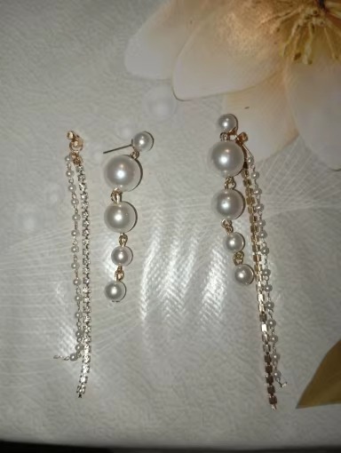 Trendy Full Crystal Simulated Pearl Tassel Drop Earring