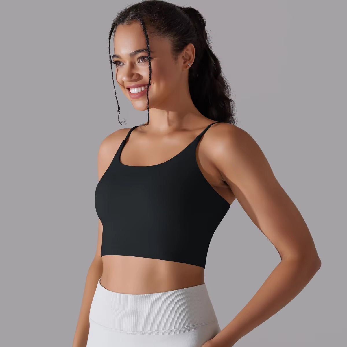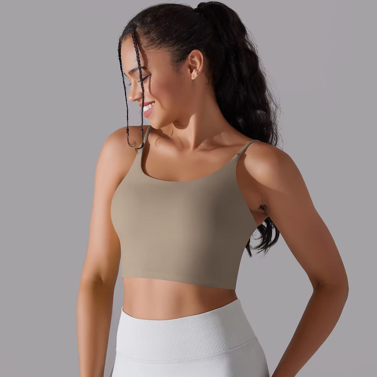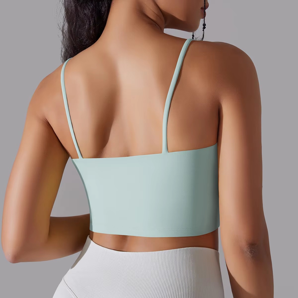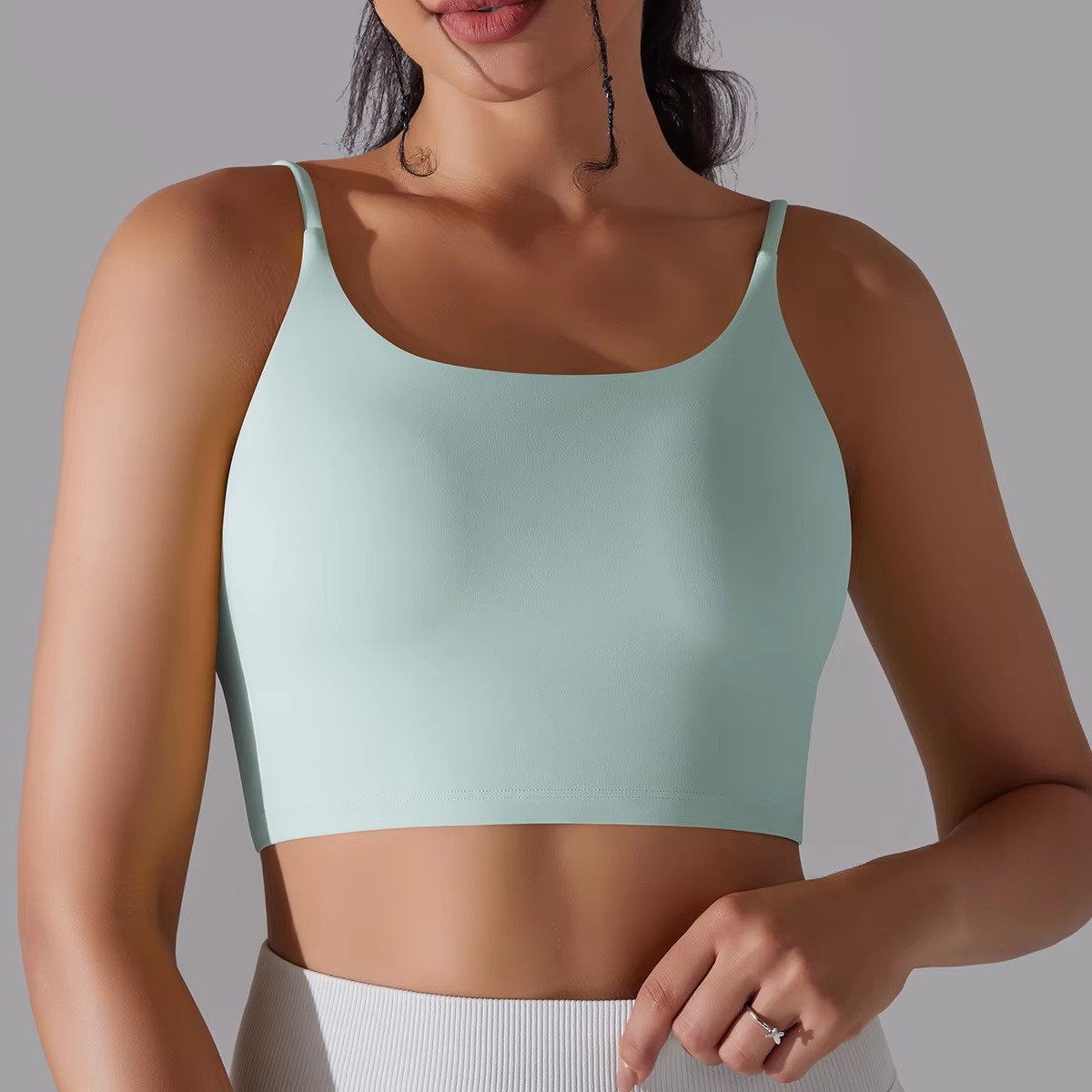Trendy Nylon Fixed Padded Gym Sport Workout Top