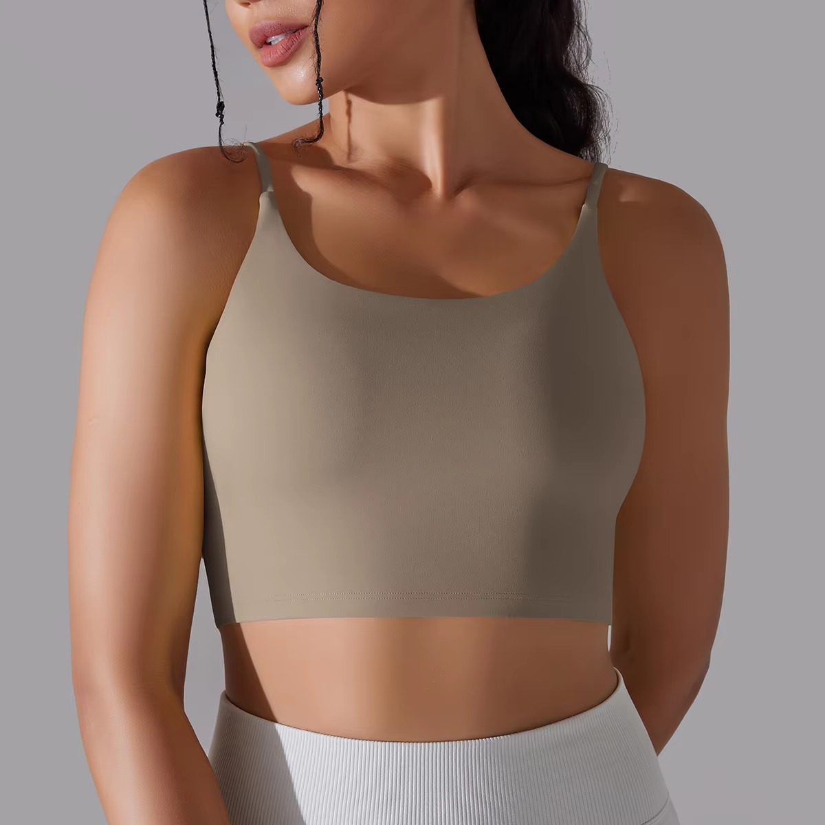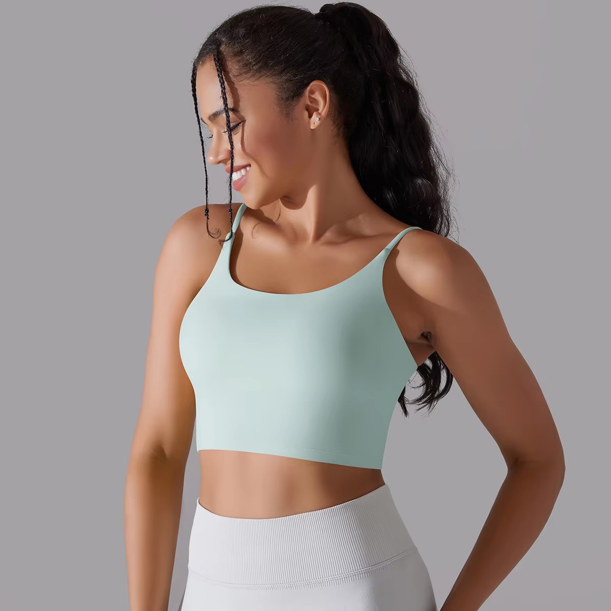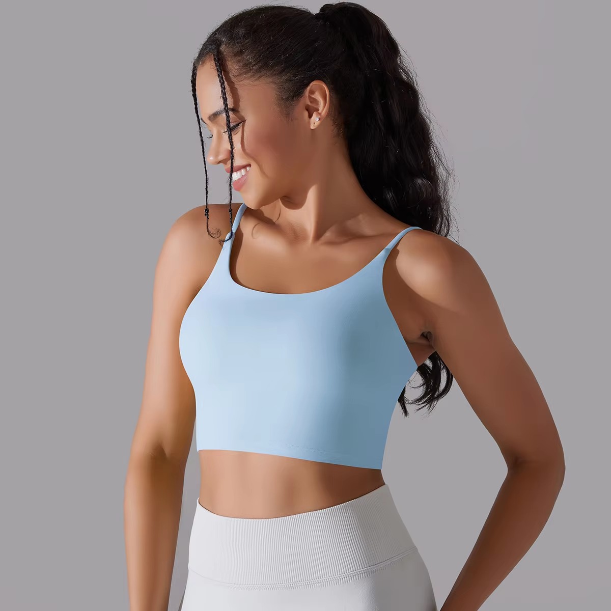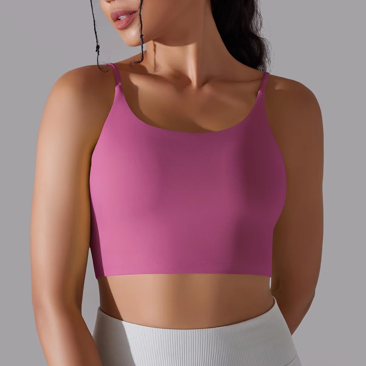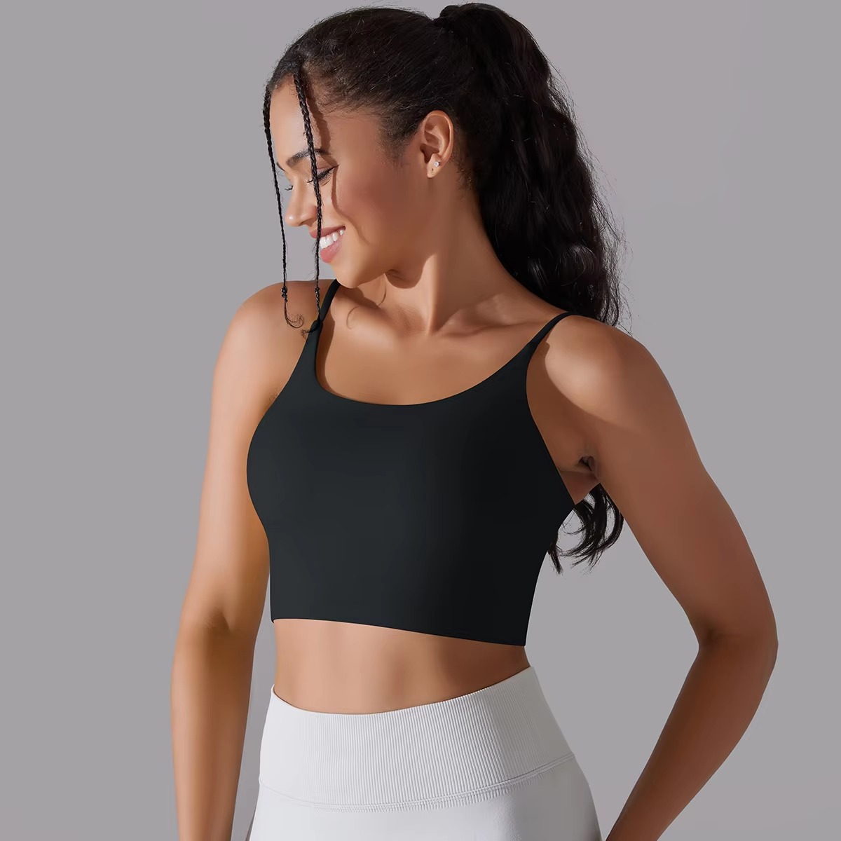 Trendy Nylon Fixed Padded Gym Sport Workout Top