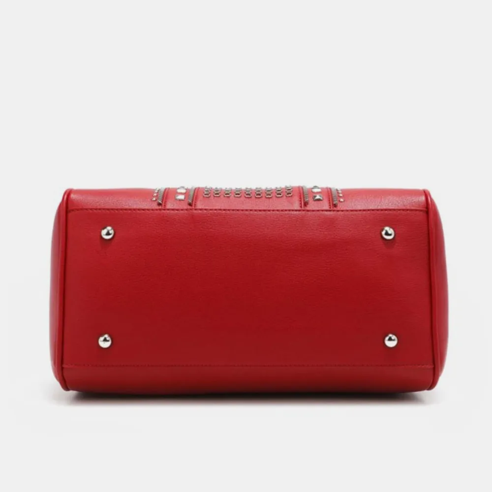 Structured, rolled dual top handles (5″ drop) with Nicole Lee authentic circle charm