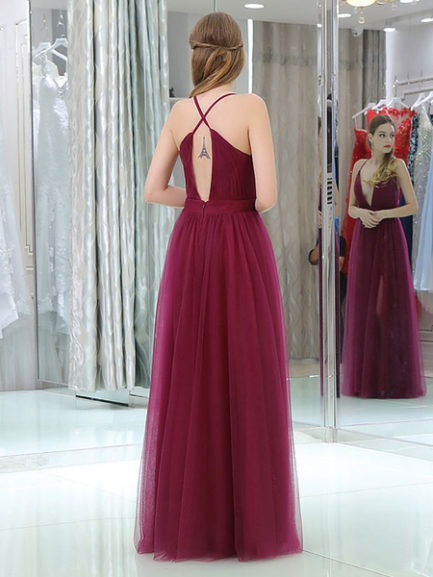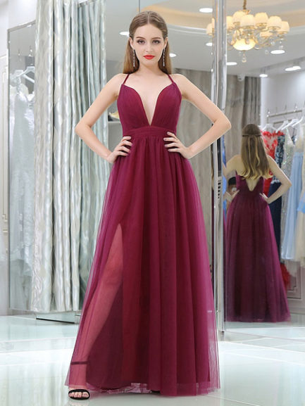 Be the first to review “Tulle V Neck A Line Sleeveless Split Front Floor Length Party Prom Dresses”